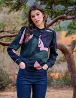 Blouse fluide imprimée et élégante en satin de viscose, idéale pour apporter une touche tendance à votre tenue. Son col volanté fantaisie et ses manches froncées finies par un poignet boutonné lui donnent un style raffiné et moderne. Une blouse soyeuse à porter du matin au soir.
