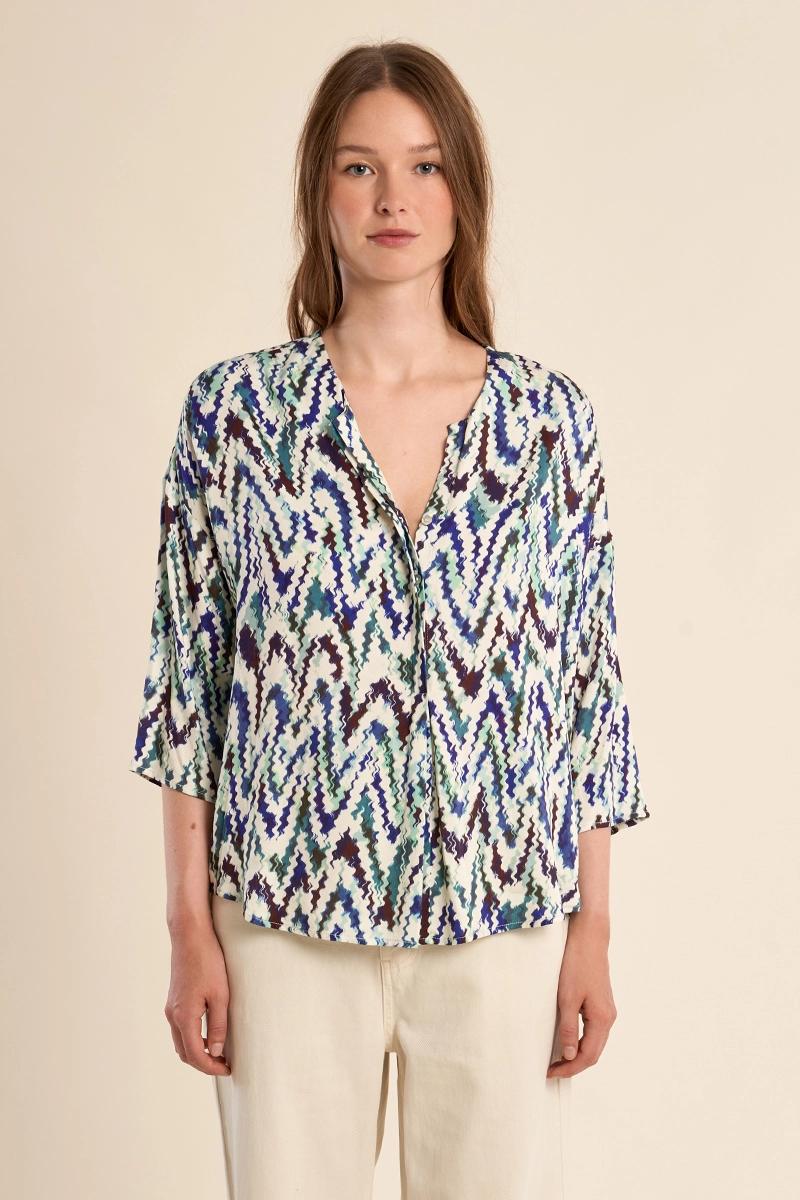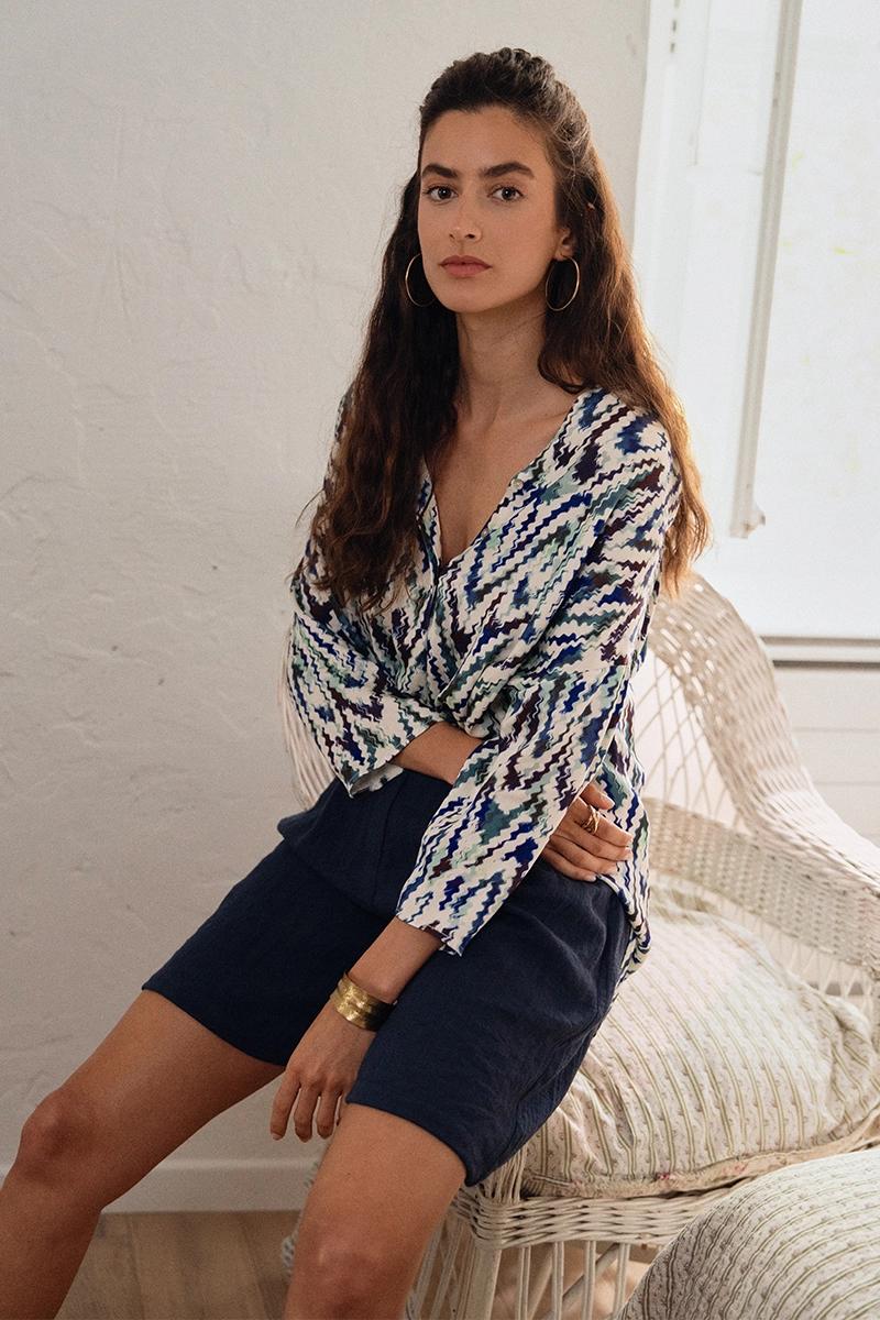 Top imprimé graphique -Col rond avec découpe -Manches mi-longues -Asymétrique