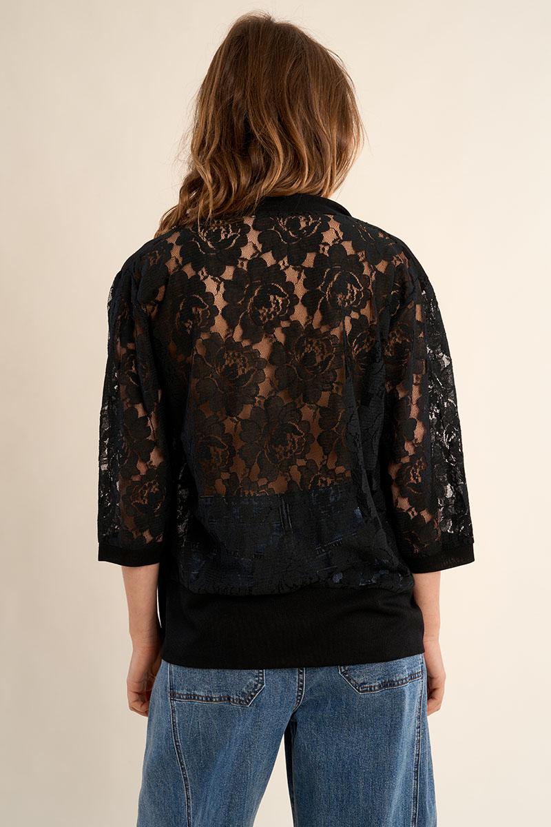 Gilet manches dentelles, mi-longues -Semi-transparence -Sans fermeture