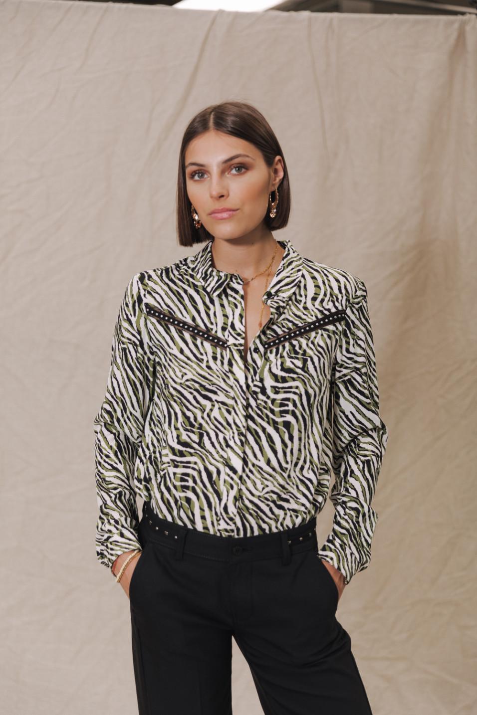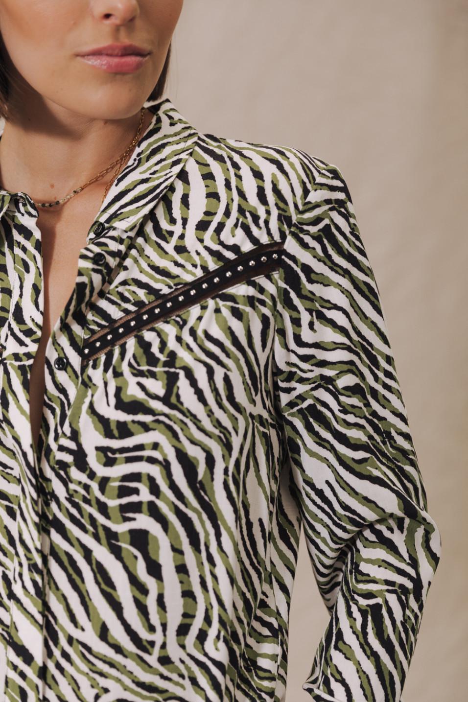 • Imprimé zébré vert et noir sur fond blanc