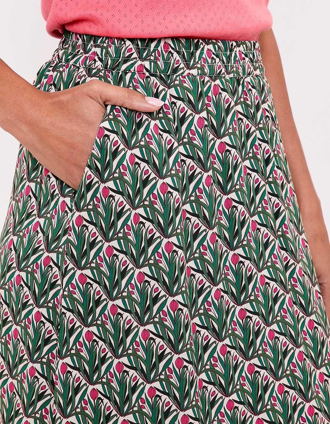 Jupe imprimée fluide midi qui séduit par son élégance et son confort grâce à sa matière en viscose LENZING™ ECOVERO™ , sa taille entièrement élastiquée et ses poches côtés. Avec sa coupe midi au joli volume, cette jupe est idéale pour une allure chic, décontractée et féminine. Déclinée en imprimés colorés, elle apporte une touche vibrante à votre garde-robe.