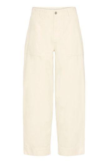 Pantalon à jambes droites avec une taille haute. Poches plaquées apparentes sur le devant.