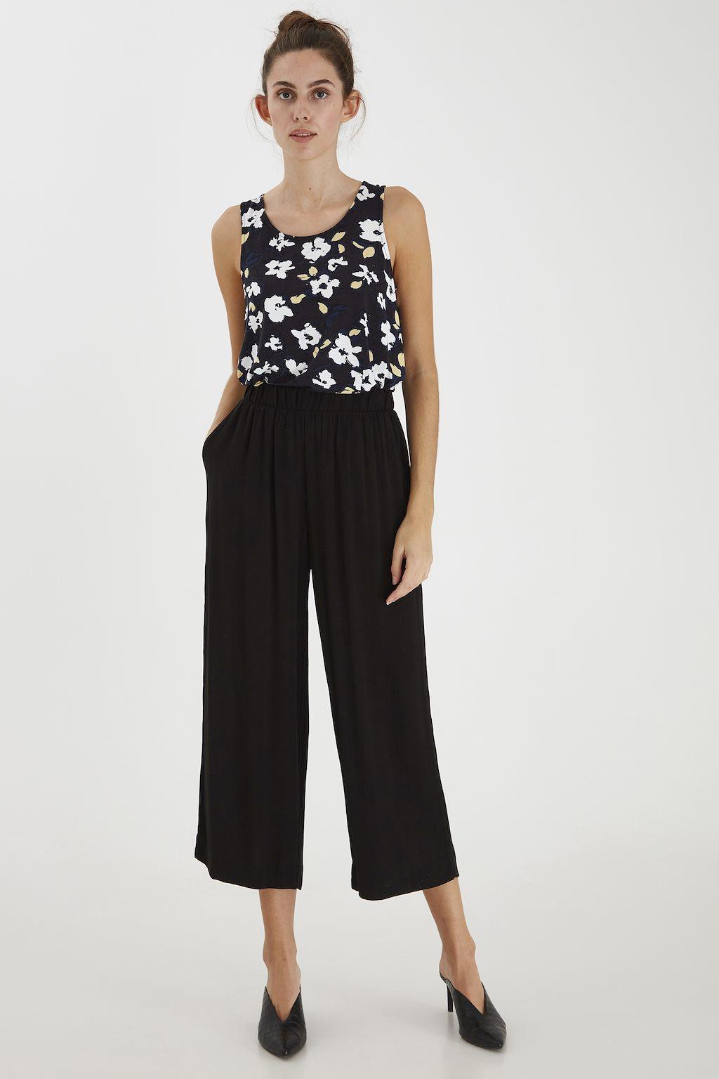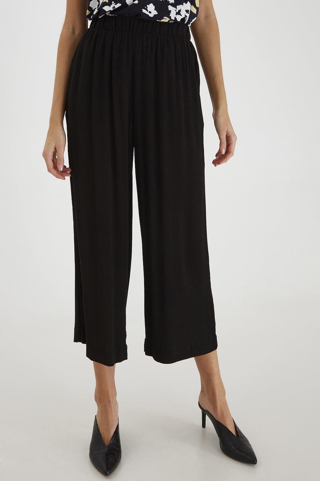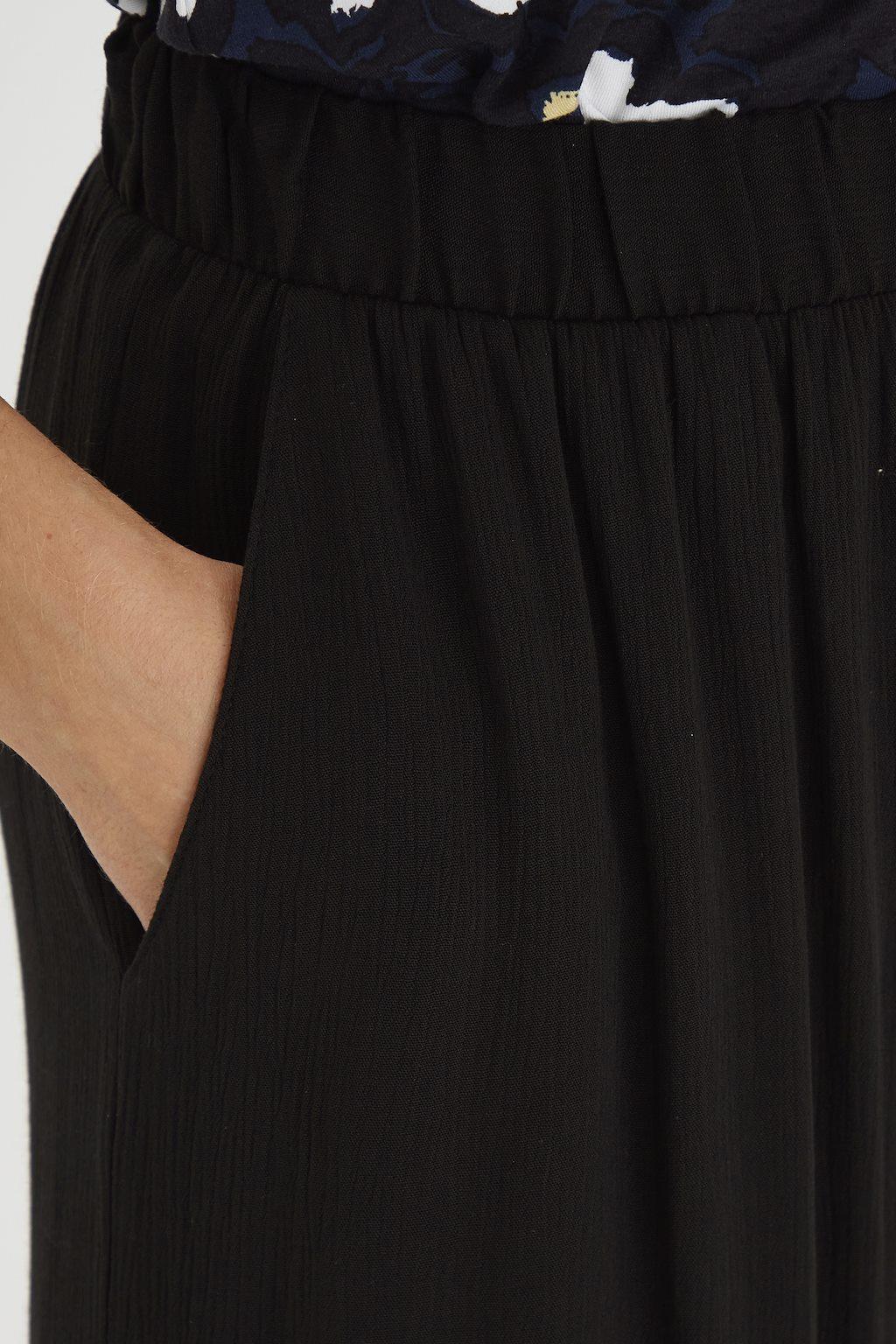 Pantalon fluide élastiqué à la taille. Coupe droite et large.