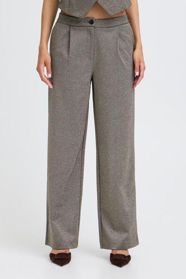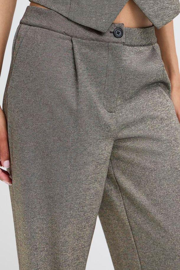 Pantalon large, coupe droite. Fermeture devant avecun bouton. Deux poches plaquées avec un pli sur le devant.