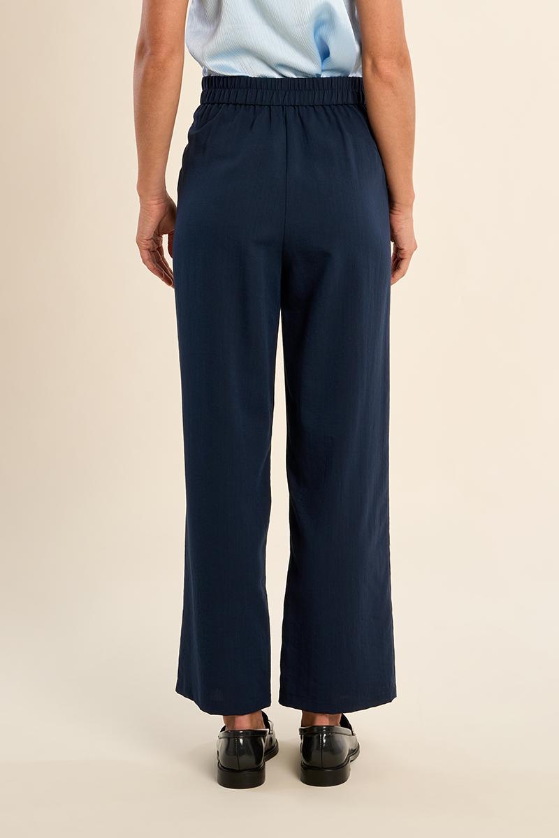 Pantalon droit, taille haute -Taille élastiquée -Fermeture par bouton et zip -Coupe droite
