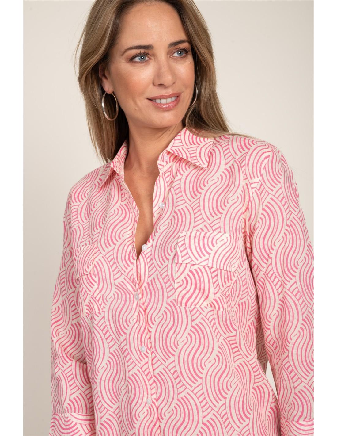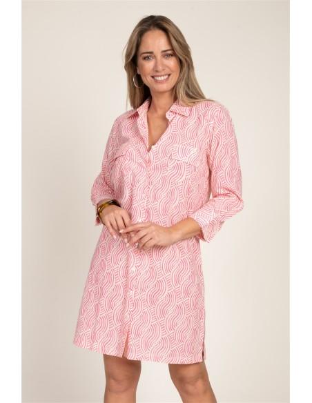 Robe chemise boutonnée. Col chemise et manches longues 3/4.