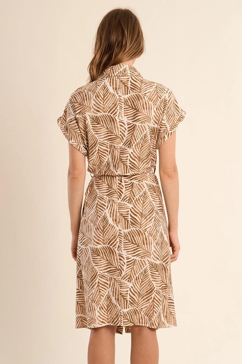 Robe chemisier courte, imprimée -Manches courtes -Taille élastiquée, nouable par ceinture -Coupe droite -Fermeture par boutons sur la poitrine