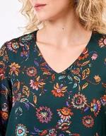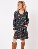 Robe fluide imprimée à la coupe évasée féminine dans sa matière soyeuse très agréable à porter. Son joli col V met en valeur délicatement le décolleté, pour une robe évasée originale et facile à porter pour toutes les morphologies.