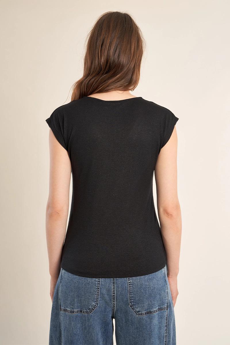 T-shirt à col V, orné de strass -Manches courtes -Coupe droite